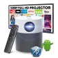 Enhance your entertainment experience with our 1080P HD, LED, 5000 Lumens WIFI Movie Projector for movies, TV, gaming, and music. connections with smartphones, computers, laptops or tablets. Works with any device: Wifi, HDMI, USB, AV cord, TF card connections. Built-in 3W Speaker, also features a port to use your own external speaker. Includes Power adaptor, Remote control, AV Cable. Includes FREE SHIPPING TO 1 METRO LOCATION. Complies with CE, FCC, RoHS. 14cm W x 17.3cm L x 9.49cm H