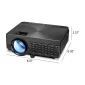 Projector with Bluetooth Transmitter: 800 x 480 native resolution, 2500 lumens. Projector includes multiple ports: 2 x HDMI, USB, AV, VGA, MicroSD. Up to 150" viewable screen size, 16:9 and 4:3 aspect ratio. Complies with CPSIA, Prop 65. 7.87" W x 17.62" H x 16.06" L
