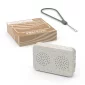 Don't be fooled by the tiny size, this speaker has punch! Measuring less than an inch thick and featuring a convenient strap, this Bluetooth speaker is ready to go anywhere. Presto Eco is a pocket sized portable speaker that uses less new plastic than the original Presto. Presto Eco is made from a blend of materials including post consumer recycled plastic, wheat straw and cork. Packaged in a gift box with options for customization. A tree is planter with every order placed. 2.875" L x 2" H x 0.75" W