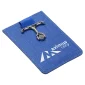 Anchor Phone Wallet + Stand features faux leatherette body, ribbon pull strap to easily remove credit cards or cash, metal anchor-shaped finger grip that also acts as a phone stand and firm-grip adhesive backing. Complies with Prop 65. 2.5" L x 1.125" W x 3.375" H