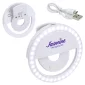 Clip-on Ring Light is great for online education, virtual conferences or meetings, work from anywhere, and content creators! Reduces shadows in the face and minimizes wrinkles and blemishes while illuminating the eyes. Works with most devices, with 3 light settings of bright white LED light. Run time: Up to 1.5 hours. Includes a micro USB charging cable. Complies with OU, Prop 65, UN38.3. 1.125" H x 3.375" Diameter