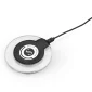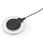 Wireless charger for Qi-enabled phones and mobile devices- Safety feature, convenient charging pad with night light function - FOD Foreign Object Detection auto shut-off for stray metal in charging path - PTC circuit protection against overheating, overvoltage and overcharging - Impact resistant polymer coaster-size casing with soft feet rest- Includes phthalate certified compliant charging cable- Input: 5V/1.5A Output: 5V/0.8AProduct Size: 3.875" x 0.375". 3.875" W x 0.375" H