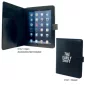 Tablet PVC leatherette media holder- Suede soft, protective lining- Inside pocket for notes- Fits 9.5 media touch screen device- Fits max media device depth 0.5- 2 camera holes