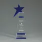 Blue and clear crystal with etched imprint. 3.25" W x 10" H