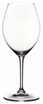 Syrah, 22.75oz RIEDEL crystal. Each glass is lead free, elegant, large, luxurious and lofty. Positioned as the new generation of RIEDEL wine glasses: developed for big, bold and concentrated wines like Grape Varietals. RIEDEL logo laser engraved on the base of each glass. Recommended hand wash only. 9.5" H x 3.66" Diameter