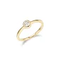 Cubic zirconia 3.5mm round bezel set solitaire ring in sterling silver with 18K gold plating. Size 7. Gift box included. Complies with Prop 65.