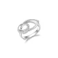 ELLE "Swing" rhodium plated sterling silver interlocking marquise and oval link pave cubic zirconia open ring. Size 6. Gift box included. Complies with Prop 65.
