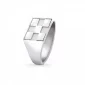 Includes custom logo on the squared top, one finger size per order. Available in Sterling Silver in ladies' or men's sizes. Complies with Prop 65.