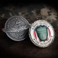 Solid brass challenge coin with finish options: antique brass, silver, or shiny gold, nickel, black nickel, copper. 1.25" D x 2.5mm Thick