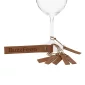 Wine culture is real. Get in on it with these seriously fun leather charms, debossed with the logo of your choice. Humorous tipplers can now claim their glasses with the attached "Rookie", "Social Drinker", "Lush", "Day Drinker", "Shots!", and "Streaker" charms at the next office get-together or dinner party. Because drinking shots from a wine glass is way classier. Wine glass not included. Complies with Prop 65. 9" W x 1.5" H