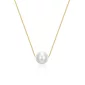 10mm shell pearl solitaire necklace in sterling silver with 18k gold plating. 16"+2" length. Gift box included. Complies with Prop 65.