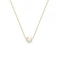 8mm genuine pearl solitaire box chain necklace in sterling silver with 18K gold plating. 16"+3" length. Gift box included. Complies with Prop 65.