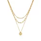Stainless steel gold IP 3-layer disc necklace. Length 15+2". Gift box included. Complies with Prop 65.