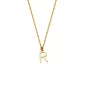 Stainless steel carded letter "R" necklace with gold plating. 18"+2" length. Gift box included. Complies with Prop 65.