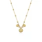 Stainless steel disc necklace with clear crystal and beaded chain in IP gold. 15+2" length. Gift box included. Complies with Prop 65.