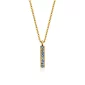 Stainless steel gold IP light sapphire December birthstone bar necklace. Gift box included. Complies with Prop 65.