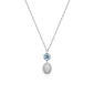ELLE "Mirage" rhodium plated sterling silver genuine 5mm round blue topaz and 10x7mm oval created opal bezel set necklace. Length 17"+3". Gift box included. Complies with Prop 65.