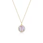 Fleur de Vie collection cubic zirconia and genuine lace agate adjustable 13mm round locket necklace in sterling silver with 18K gold plating. 18" length. Gift box included. Complies with Prop 65.