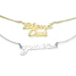 Custom shaped cut-out slogan charm on a 20" long, thin chain. Complies with Prop 65. 1.5" L x 0.75" W