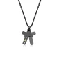 Stainless steel black and gold ip white cubic zirconia double cross pendant. Length 22". Gift box included. Complies with Prop 65.