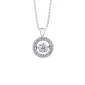 Diamond halo Pendant lined with 14 diamonds (0.20 CT TW) featuring a 0.15 CT diamond solitaire with unique pulsing setting in 10K White Gold. H-J colour. I1-I3 clarity. Chain not included. Complies with Prop 65.