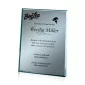 The beveled silver mirror of this 5" X 7" plaque is etched on the back silvered surface and color-filled (most often with white or black fill) to heighten contrast. The result is a lovely and bright artwork presentation with the etching fully protected by the overlying glass. Comes complete with easel backing. Also available in 6" X 8", 7" X 9", 8" X 10" and 9" X 12" sizes. One colorfill included. Please specify vertical or horizontal format. 5.0" W x 7.0" H