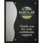 These plaques feature a polished beveled black acrylic with metal accents. The clear acrylic imprint panel is suspended with decorative chrome hardware. 8" W x 10" H x 1" Thick