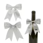An elegant bow charm handcrafted to be presented on wine bottles, Christmas trees, home decor, weddings, and more. The bow features a durable elastic loop on the back which secures the bow in place for a hassle-free stylish finish to your gifts. Each bow can be customized with a logo to match any of your occasions. 3.5" L x 3.5" W