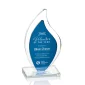 The clear and solid blue crystal flame shape is mounted to a clear crystal base to create an infinity reflection in the Flamingo award's brightly polished surface. 8.0" H