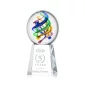 Experience the stunning spectrum of colors in the Galileo Art Glass Award! A Stunning Hand Blown work of Art Complete with a complimenting Optical Celestina base for personalization with a Logo or Name. Each piece is individually Hand-crafted. No two pieces are identical. All sizes are approximate and will vary from piece to piece. 3.0" W x 5.75" H x 3.0" D