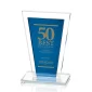 The solid blue trapezoidal crystal shape of the Heckel is surrounded by clear crystal that reflects into the clear crystal base to create an infinite reflection of elegance. 8.0" H