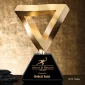 The amazing organic twists of the cast metal Mithra align with mathematical perfection when viewed from the front to form a perfect geometric triangle mounted to an ebony optical crystal base. 9.5" H