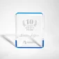 Ice blue reflectors shower a mirage of sapphire throughout the clear faceted acrylic award, highlighting each bevel with stunning color. 4.75" W x 6.25" H