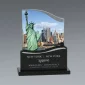 These distinctive destination pieces are perfect for recognizing company conferences, summits or excursions. Each award consists of glass with a black granite base and highlighted by full-color cityscapes of notable landmarks. Choose from 8 stock cityscapes, including Las Vegas, Toronto, New York City, Chicago, Orlando, San Francisco, Whistler and Calgary. 5" W x 6.125" H