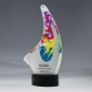 Glass upright with color imprint on the back of the glass. Silver metal front overlay with color imprint. Oval black crystal base. 5.75" W x 11" H