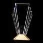 The Valiant award is formed from seven beveled spears of optical crystal joined at dramatic angles to create this exquisite beam of radiant crystal. The sculpture shoots from a cast metal base finished in your choice of brushed gold or silver plated metal. 7.5" W x 13.25" H x 1.75" D