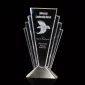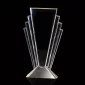 The Valiant award is formed from seven beveled spears of optical crystal joined at dramatic angles to create this exquisite beam of radiant crystal. The sculpture shoots from a cast metal base finished in your choice of brushed gold or silver plated metal. 6.5" W x 12.0" H x 1.75" D
