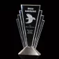 The Valiant award is formed from seven beveled spears of optical crystal joined at dramatic angles to create this exquisite beam of radiant crystal. The sculpture shoots from a cast metal base finished in your choice of brushed gold or silver plated metal. 7.5" W x 13.25" H x 1.75" D