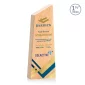 The 1.5" thick freestanding wooden Nottinghill VividPrint™ Award conveys a sense of strength and permanence, making it a substantial symbol of recognition. Crafted with precision and style, this unique award features a thick, freestanding design with a distinctive slanted right-facing peak top, creating a visually captivating and modern aesthetic. Second position laser engraving is optional. Let your artwork stand out with full-color VividPrint™. 3.625" W x 10.0" H x 1.5" D