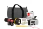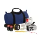 Sac en forme de baril en polyester 600D résistant à l'eau et aux perforations, doté de poignées renforcées et d'un crochet inférieur avec bande en boucle qui adhère à la moquette. Le sac comprend : une radio/lanterne Dynamo Solar AM-FM avec port USB alimenté par manivelle, adaptateur solaire AC/DC rechargeable ou port USB, une lanterne à 3 LED, un mini port USB pouvant également être alimenté par une alimentation DC 5V, 3 piles AAA (non incluses), une lampe et une radio résistantes à l'eau et à manivelle, une lampe torche en caoutchouc, des bougies, un bâton lumineux et une couverture en mylar. Conforme aux normes CE, FCC. 11" L x 6" D