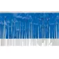 Le frange est un élément essentiel pour un char allégorique. Ajoutez un élément décoratif qui flotte dans la brise ou créez une jupe pour votre remorque. Fabriqué en vinyle. Schéma de couleurs bleu métallique et blanc standard. Le bleu métallique reflète la lumière et crée des étincelles. Disponible en longueurs de 10 pieds. Conforme à la proposition 65.