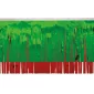 Le frange est un élément essentiel pour un char allégorique. Ajoutez un élément décoratif qui flotte dans la brise ou créez une jupe pour votre remorque. Fabriqué en vinyle. Schéma de couleurs vert métallique et rouge standard. Le vert métallique reflète la lumière et crée des étincelles. Disponible en longueurs de 10 pieds. Conforme à la proposition 65.