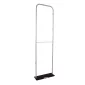L'affichage de bannière EuroFit vous permet de créer des arrière-plans incroyables ou des cloisons de confidentialité portables. Base en acier avec finition en poudre noire. Les pieds en plastique élèvent la base et maintiennent l'affichage stable. La housse graphique glisse sur le cadre comme une taie d'oreiller (housse graphique vendue séparément). Garantie d'un an. Conforme à la proposition 65. 9,875" L x 25,625" l x 91" H.