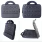 Matériau : Nylon + EVA + velours Fonction : imperméable et antichoc Extérieur : double fermeture éclair n°5, grande surface à pois, sangle et deux boucles en D, tirette noire Intérieur : poche en filet intérieure à l'avant avec 2 bandes élastiques fixes à l'avant et à l'arrière. 13" L x 9,8" l x 2,2" P
