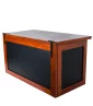 Gardez vos fûts et boissons pression froides et rafraîchissantes avec cette housse pour jockey box. Cette housse de 35,5" x 17" x 18" a une construction de cadre en bois massif pliable avec une surface de tableau noir sur trois côtés pour créer des messages personnalisés, des dessins, des éléments de menu et des offres spéciales. Un côté ouvert permet un accès facile et l'étui de transport inclus avec des bretelles rend le transport facile. Conforme à la proposition 65. 35,5" L x 18" H x 17" P