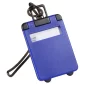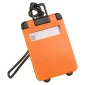 Étiquette de bagage en forme de valise, ultra fine, sangle en silicone, fenêtre avant facile à voir, s'ouvre pour révéler toutes les informations du propriétaire. Conforme à la proposition 65. 2,125" L x 0,125" l x 3,5625" H.