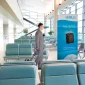 Commentaire : Cet affichage pop-up se transforme d'une unité compacte en un impressionnant fond en quelques minutes.