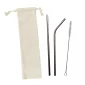 Sauvez notre planète, une paille à la fois. Paille en acier inoxydable de qualité alimentaire 18/8 ; ensemble de 3 pièces : une paille droite, une paille courbée et une brosse de nettoyage ; emballé dans un sac en coton à cordon ; le prix comprend une impression en une couleur sur le sac en toile de jute ; la gravure au laser est disponible sur chaque paille à 0,30 $ (G), plus des frais de configuration de 45 $ (G). Conforme à la FDA, Prop 65. 8,5" L x 0,24" D