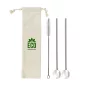 Cuillères pailles en acier inoxydable de qualité alimentaire Idéales pour les cocktails et les smoothies 2 cuillères + 1 brosse de nettoyage Le prix comprend une impression en une couleur sur le sac en coton Également disponible à l'unité KW782. Conforme à la FDA, Prop 65. 7,5" L x 1,25" D