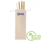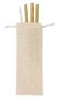 Ensemble de pailles en bambou. Comprend 3 pailles droites en bambou avec logo laser, 1 nettoyeur dans un sac en jute. Conforme à la proposition 65. 10" H x 2.75" L.